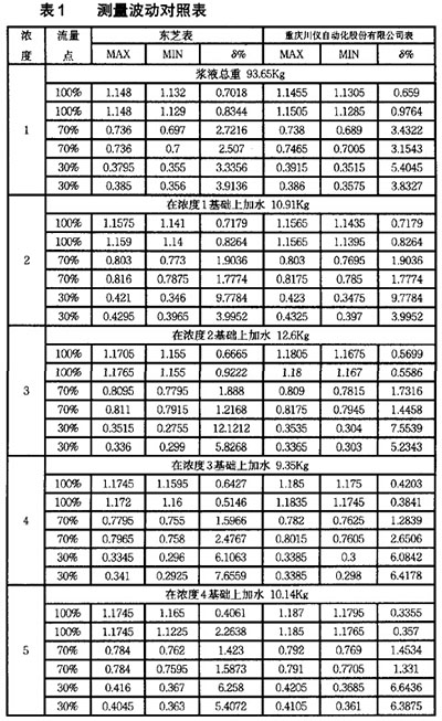 在造紙行業(yè)有大量的紙漿液體需要測(cè)量,就會(huì)用到大量的流量測(cè)量?jī)x表,目前在造紙行業(yè)中用于測(cè)量流量的儀表,主要有電磁流量計(jì)等儀表,因?yàn)?a href="http://www.2822688.com">電磁流量計(jì)具有非常強(qiáng)的優(yōu)點(diǎn),所以非常適合在紙漿的流量測(cè)量中使用。在紙漿實(shí)驗(yàn)裝置上,使用串聯(lián)在同一管道上該公司生產(chǎn)的防爆型電磁流量計(jì)價(jià)格與日本東芝的防爆型電磁流量計(jì)價(jià)格測(cè)量不同濃度和流量的紙漿漿液,以驗(yàn)證其可靠性。波動(dòng)率對(duì)比實(shí)驗(yàn)結(jié)果表明,該產(chǎn)品用于紙漿漿液測(cè)量時(shí)能夠很好地克服漿液噪聲。在滿流量測(cè)量時(shí),上述實(shí)驗(yàn)中各濃度下漿液測(cè)量穩(wěn)態(tài)波動(dòng)率均在1%以內(nèi);其它流量下測(cè)量時(shí),由于實(shí)驗(yàn)系統(tǒng)主管道上游分流控制流速不穩(wěn),進(jìn)而導(dǎo)致測(cè)量穩(wěn)態(tài)波動(dòng)率相對(duì)較大,甚至達(dá)到近7‰ 但由表1可知,在各種漿液濃度及各流量點(diǎn)下,凱銘儀表有限公司生產(chǎn)的防爆型電磁流量計(jì)價(jià)格的穩(wěn)態(tài)波動(dòng)率始終與日本東芝防爆型電磁流量計(jì)價(jià)格的測(cè)量結(jié)果一致,從而表明實(shí)驗(yàn)系統(tǒng)的測(cè)量結(jié)果能準(zhǔn)確反映實(shí)際漿液流量大小。 說明:MAX、MIN分別表示該組數(shù)據(jù)測(cè)得流速的的*大值和*小值,單位m/s。