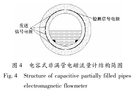 ②電容式非滿管煤漿流量計h。電容式非滿管煤漿流量計結(jié)構(gòu)簡圖如圖4所示。、檢測信號電* 發(fā)送信號電