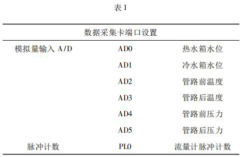 數(shù)據(jù)采集系統(tǒng)由工控機(jī)、分體式污水流量表以及數(shù)據(jù)采集卡組成。 4000 次冷熱沖擊試驗(yàn)要求在在*大流量 qs 條件下運(yùn)行,對(duì)流量數(shù)據(jù)的采集用到分體式污水流量表及數(shù)據(jù)采集卡。分體式污水流量表采集管路流量,數(shù)據(jù)采集卡將分體式污水流量表采集到的數(shù)據(jù)反饋給工控機(jī)系統(tǒng)。過程中,試驗(yàn)管路水溫以及水箱水位的采集控制也是通過數(shù)據(jù)采集卡反饋給系統(tǒng)控制。試驗(yàn)過程用到的數(shù)據(jù)采集卡采用研華生產(chǎn)的PCI - 1711。PCI - 1711 是一款多功能 PCI 總線數(shù)據(jù)采集卡,具有 16 路單端模擬量輸入功能、2 路 12位模擬量輸出功能、16 路數(shù)字輸入和 16 路數(shù)字輸出功能、計(jì)數(shù)器功能等。為保證冷熱沖擊試驗(yàn)結(jié)果的準(zhǔn)確性,嚴(yán)要求嚴(yán)格控制管路流量以及管路壓力。因此,管路設(shè)置前后管路溫度、冷熱水箱水位以及管路壓力的采集,管路流量根據(jù)分體式污水流量表脈沖計(jì)數(shù)進(jìn)行采集,其數(shù)據(jù)采集卡端口設(shè)置如表 1 所示。
