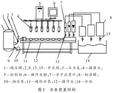 水表檢定裝置是全自動水表校驗裝置,水表檢定裝置以計算機為核心,它在需要檢定水表上方安裝攝像裝置,連接到圖像采集和高速計算器中,計算器可以識別水表指針的流量數(shù)值,自動控制水流量,實現(xiàn)水表檢驗的全自動化,針對水表檢定裝置存在的問題提出解決方案,減少水表檢定裝置在使用過程中出現(xiàn)質量問題,讓水表檢定裝置可以不斷完善。