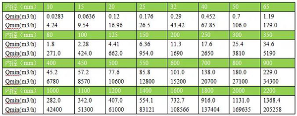 當(dāng)介質(zhì)流速達(dá)不到要求時(shí),應(yīng)當(dāng)選用較小口徑這時(shí)應(yīng)使用異徑錐管或修改部分管道,使其與徑,但前后直管段至少須滿足:前直管段≥管道≥2DN(DN 為管徑)