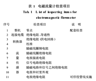 若能證明測量要素B仍保持在原校準(zhǔn)流量時(shí)的允差范圍內(nèi),且證明沒有影響流量信號的其他不利因素(如信號回路絕緣電阻下降),就可確認(rèn)所測流量值仍保持原有性能的值。為證明B維持原值,應(yīng)檢驗(yàn)勵(lì)磁線圈電阻/絕緣以及勵(lì)磁電流,評估B;檢查電*信號電路絕緣良好,證明流量信號沒有被分流;測量電*接液電阻,評估電*表面狀況是否妨礙正常測量;檢查測量各部件絕緣電阻以判斷零部件劣化程度;再以模擬信號器及其他通用儀器檢查轉(zhuǎn)換器完好性。這些檢查項(xiàng)目如表1所示,文獻(xiàn)有詳細(xì)的論述。