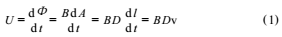 其中,B為磁感應(yīng)強(qiáng)度,A為磁通量變化面積,D為導(dǎo)體長度,dl為被測介質(zhì)運(yùn)動(dòng)的距離,v為被測介質(zhì)運(yùn)動(dòng)的速度,U為感應(yīng)電動(dòng)勢。