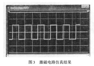 其中,Vp2是P2端口輸出電壓幅值的絕對值,此處應(yīng)該是+24V。整個(gè)電路是對稱的,且R15=R20,當(dāng)P2.9為低電平,P2.8為高電平時(shí),P2的端口2無電壓輸出,端口1輸出+24V的電壓,Vref(+)值不變,如此周而復(fù)始輸出頻率為6.25Hz的的雙*性矩形波。用Multisim仿真結(jié)果如圖3所示。