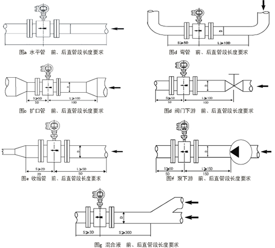 ⑹前后直管段為流量計(jì)前≥5DN,后端≥2DN。